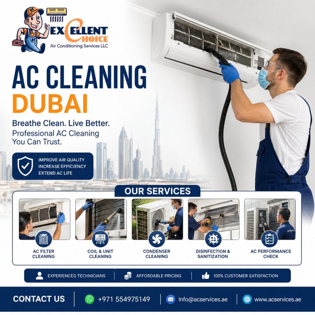 In a city like Dubai, where temperatures soar for most of the year, air conditioning is not a luxury—it is a necessity. However, many people overlook one critical aspect of maintaining their cooling systems: regular cleaning. AC Cleaning Dubai services are essential not only for comfort but also for health, efficiency, and cost savings. At Excellent Choice Air Conditioning Services LLC, we specialize in delivering high-quality AC cleaning solutions that keep your system running smoothly.