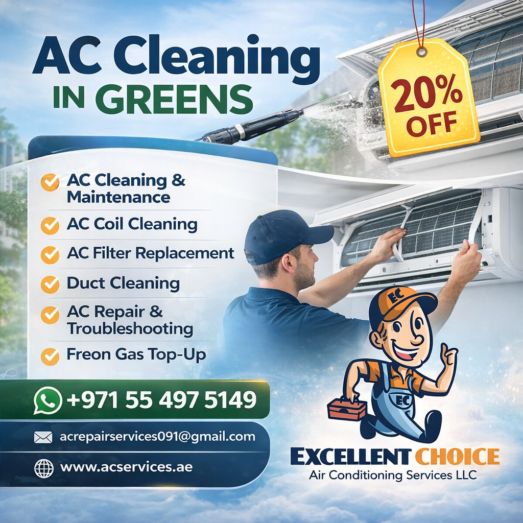 Choosing the right service provider for AC Cleaning in Greens makes all the difference. At Excellent Choice Air Conditioning Services LLC, we combine expertise, advanced equipment, and customer-focused service.